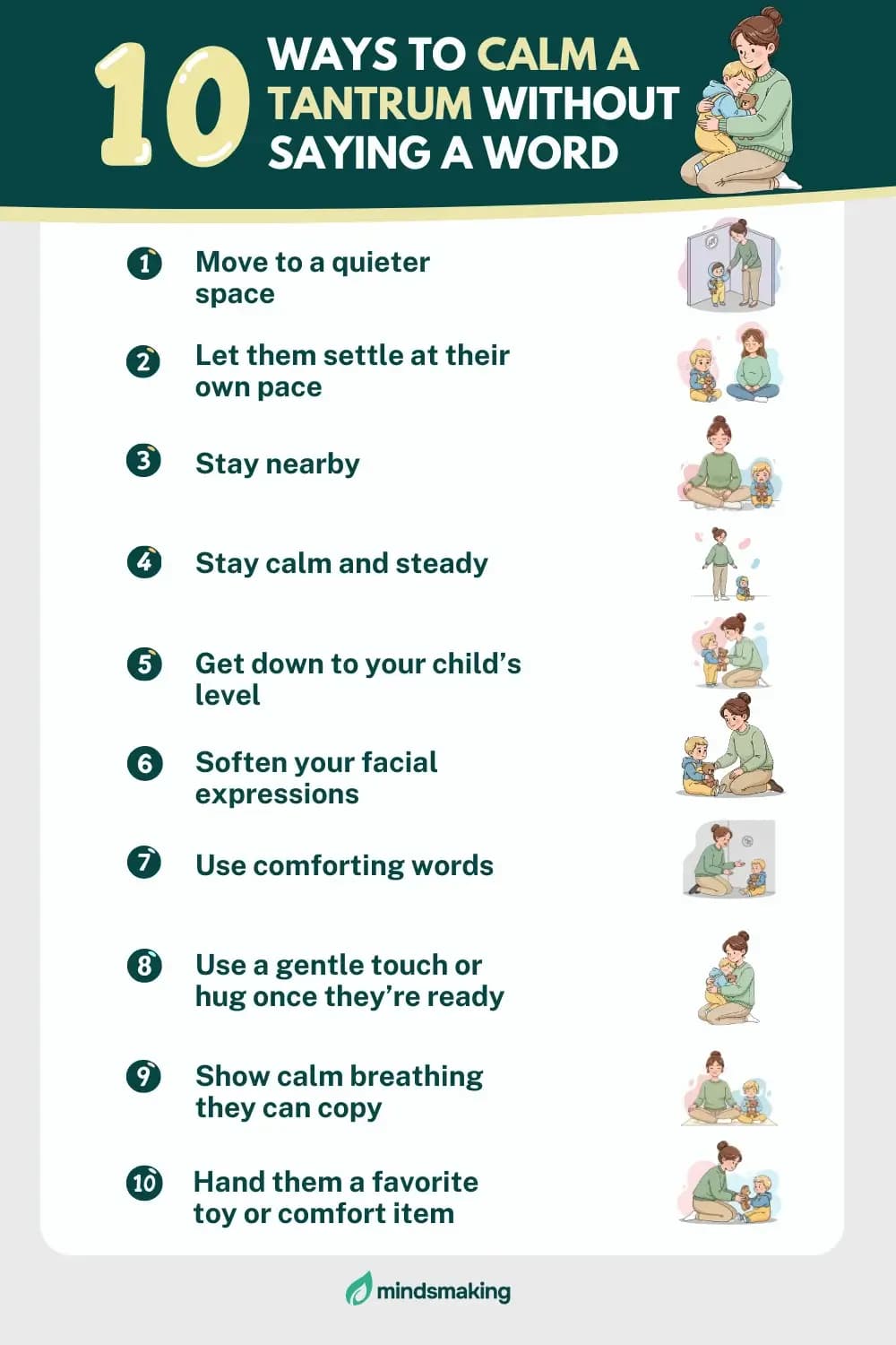 Tantrums are a normal part of toddlerhood, but you don’t always need words to help your little one calm down. Using the nonverbal strategies discussed can teach them self-regulation while keeping the situation calm for both of you. With patience and consistency, these moments become opportunities for learning, connection, and building emotional skills that last a lifetime.