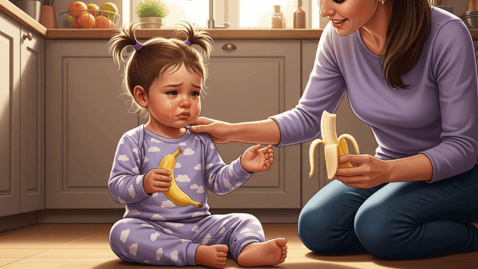 Tip: Stay calm and offer comfort. Redirect their attention to something else or offer them a new banana. It’s a great opportunity to teach emotional regulation—“It’s okay, let’s fix it!” can go a long way.