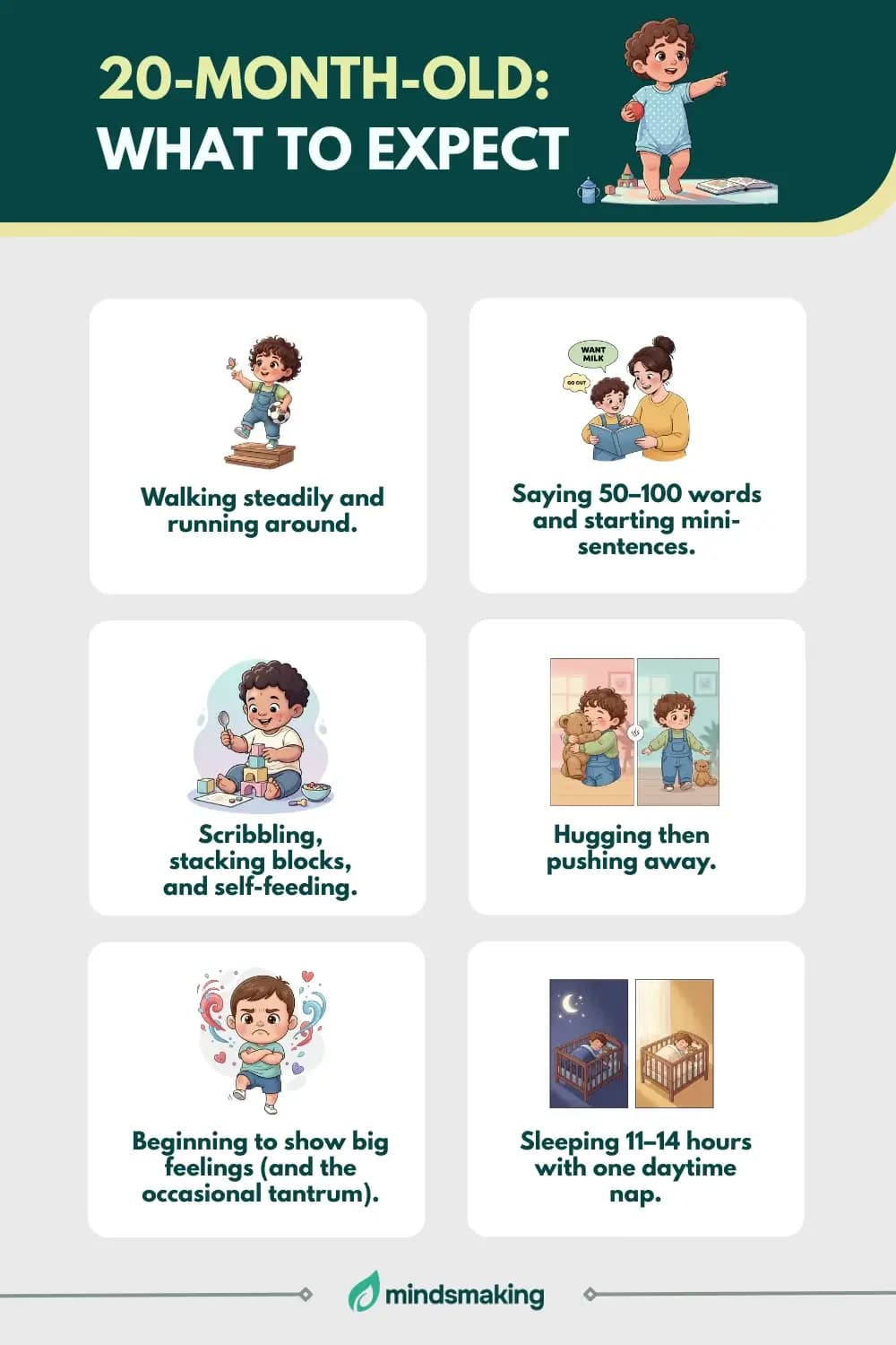 At 20 months, your toddler is full of energy, exploring, learning new words, showing emotions, and growing independence, yet there is much more to know about their development.