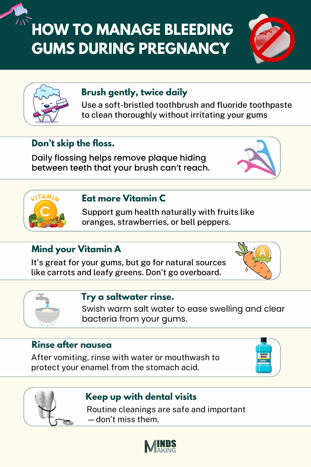 Bleeding gums during pregnancy can be managed with simple home remedies and a focus on good oral hygiene.