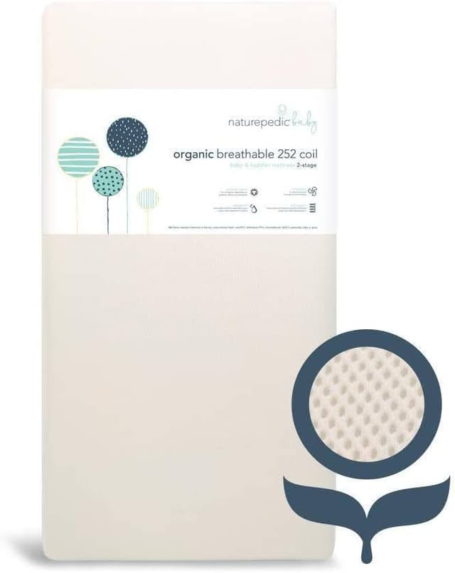Naturepedic Organic Crib Mattress - 2-Stage 252 Coil Infant & Toddler Mattress with Protector Pad