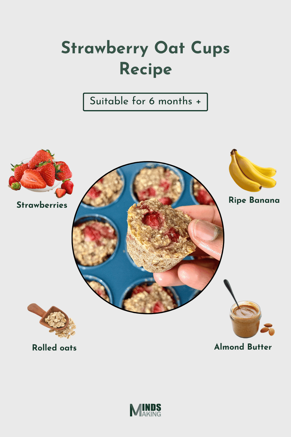 These oat cups are great for babies 6 months and older, especially those starting baby-led weaning. They’re soft, easy to hold, and naturally sweetened — perfect for little hands and developing taste buds.